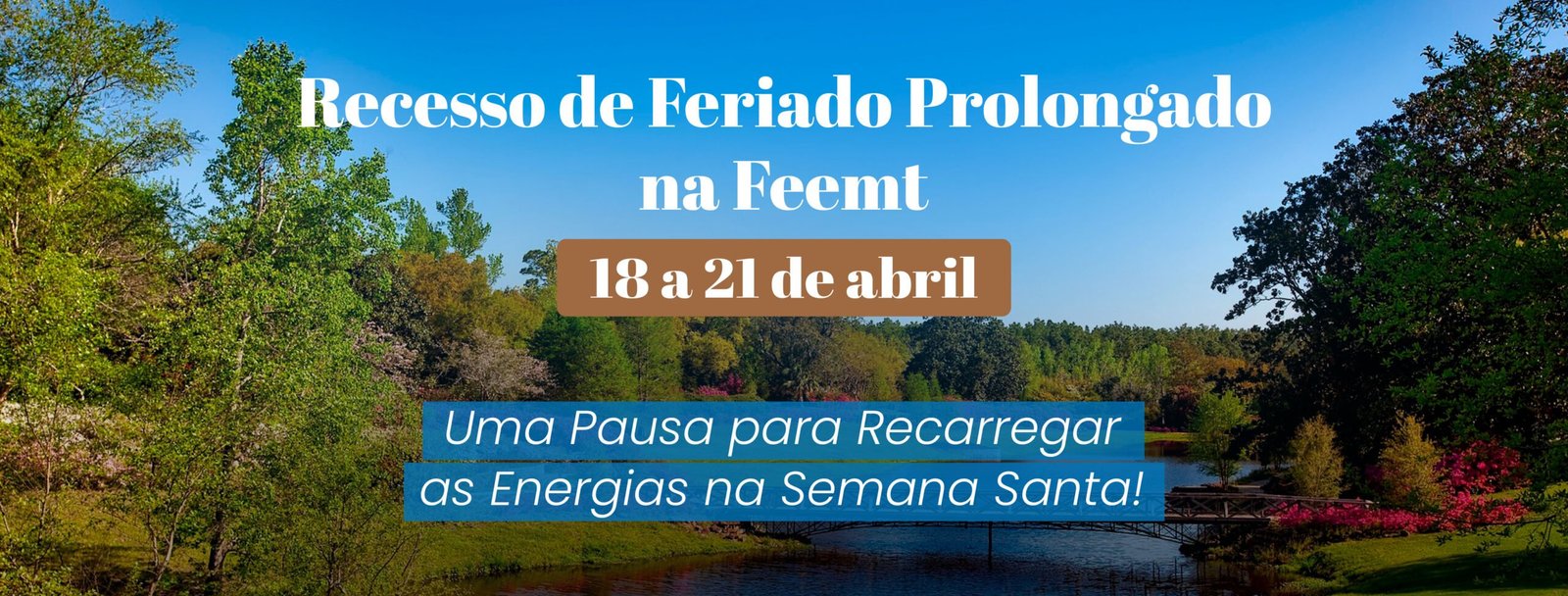 A Federação Espírita do Estado de Mato Grosso (Feemt) informa que estará em recesso de 18 a 21 de abril, em observância à Semana Santa. As atividades normais serão retomadas no dia 22 de…