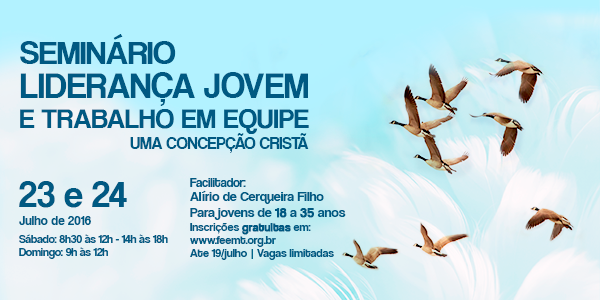 Nos próximos dias 23 e 24 de julho, a Federação Espírita do Estado de Mato Grosso (Feemt) realiza o seminário 'Liderança Jovem e Trabalho em Equipe: uma Concepção Cristã', para jovens trabalhadores de 18 a…