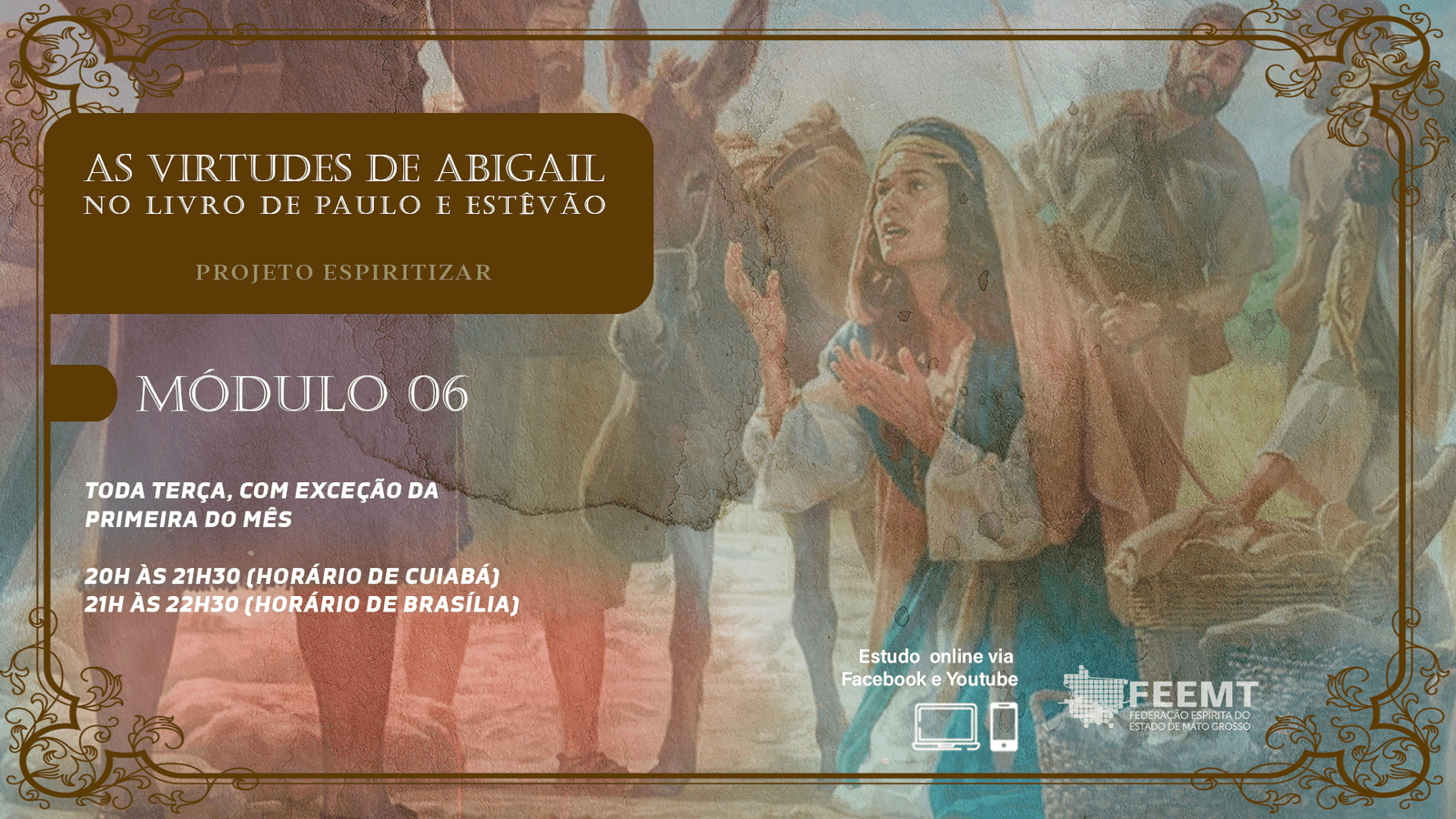 O Estudo Reflexivo “As virtudes de Abigail no livro de Paulo e Estêvão” é um programa de estudo desenvolvido pela Feemt – Federação Espírita do Estado de Mato Grosso por meio do Projeto Espiritizar. Segue acontecendo toda terça-feira, com…