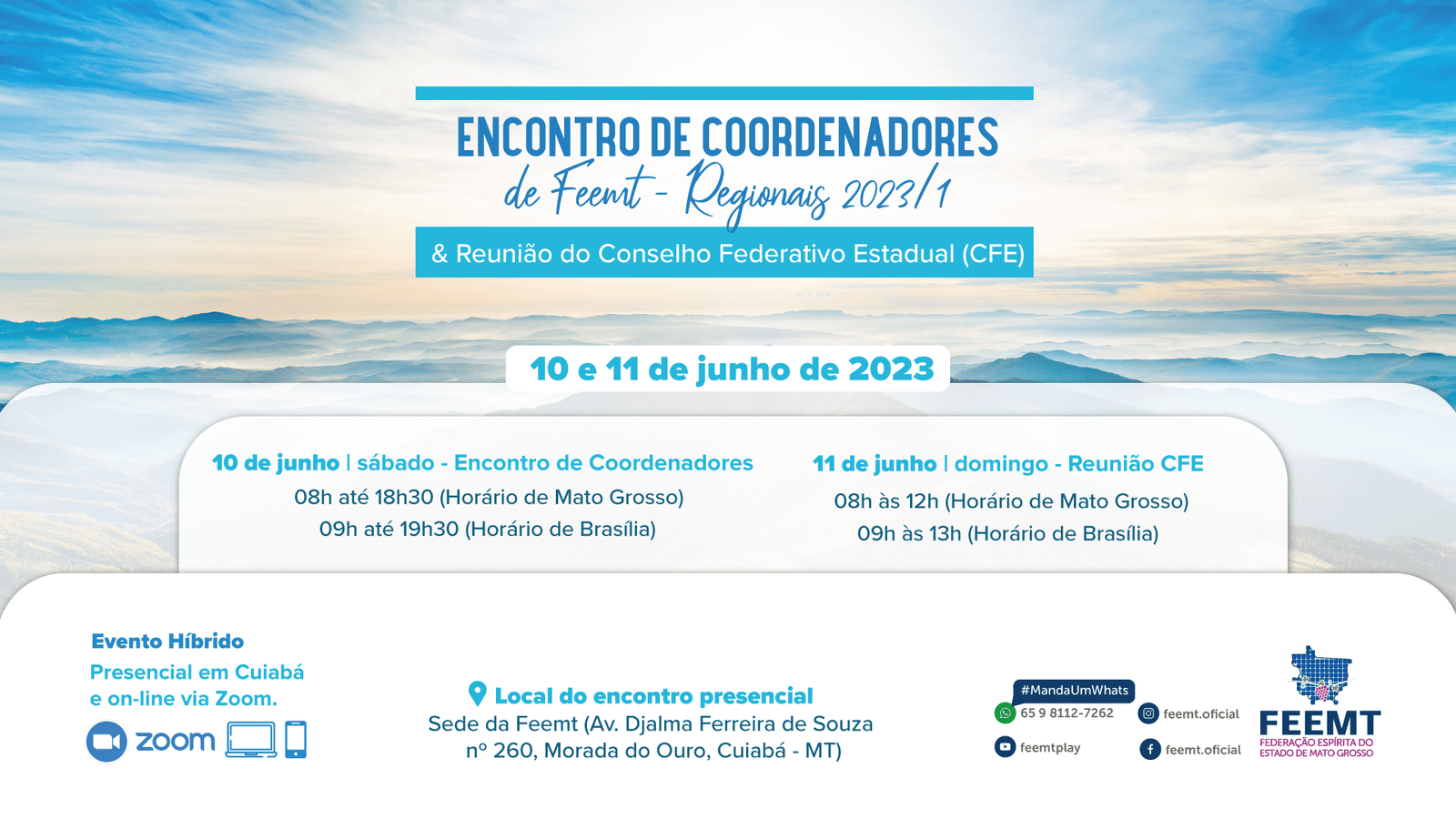 Nos dias 10 e 11 de junho a Federação Espírita do Estado de Mato Grosso promove a sua primeira edição de 2023 do Encontro de Coordenadores de Feemt – Regionais e a reunião de seu Conselho…