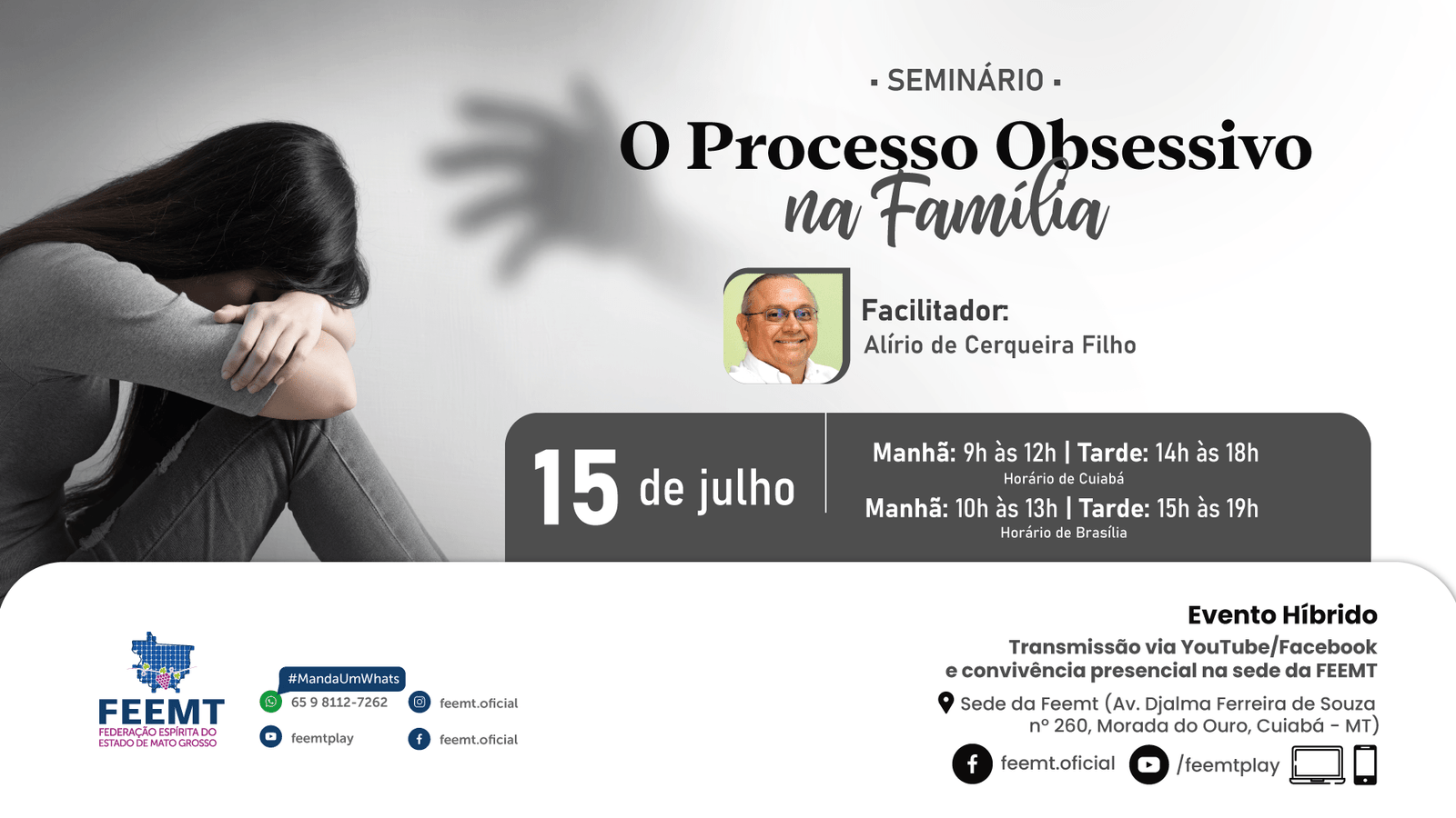 Você está convidado a participar do nosso Seminário “O processo obsessivo na família” com o Projeto Espiritizar! O Seminário ocorrerá no dia 15 de julho (sábado). Facilitador: Alírio de Cerqueira Filho Dia 15/07…