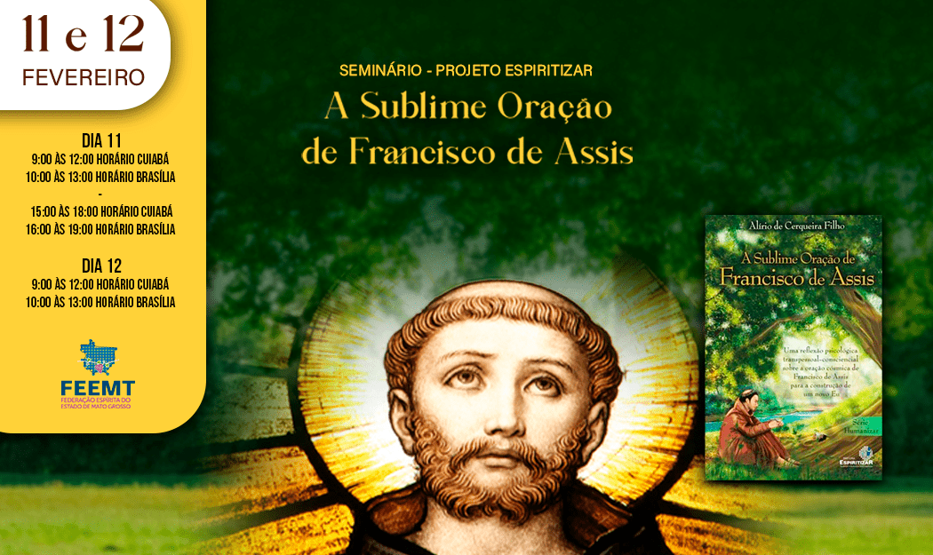 Você está convidado a participar do nosso Seminário “A Sublime Oração de Francisco de Assis” com o Projeto Espiritizar! O Seminário ocorrerá nos dias 11 e 12 de Fevereiro (sábado e domingo). Facilitador: Alírio…