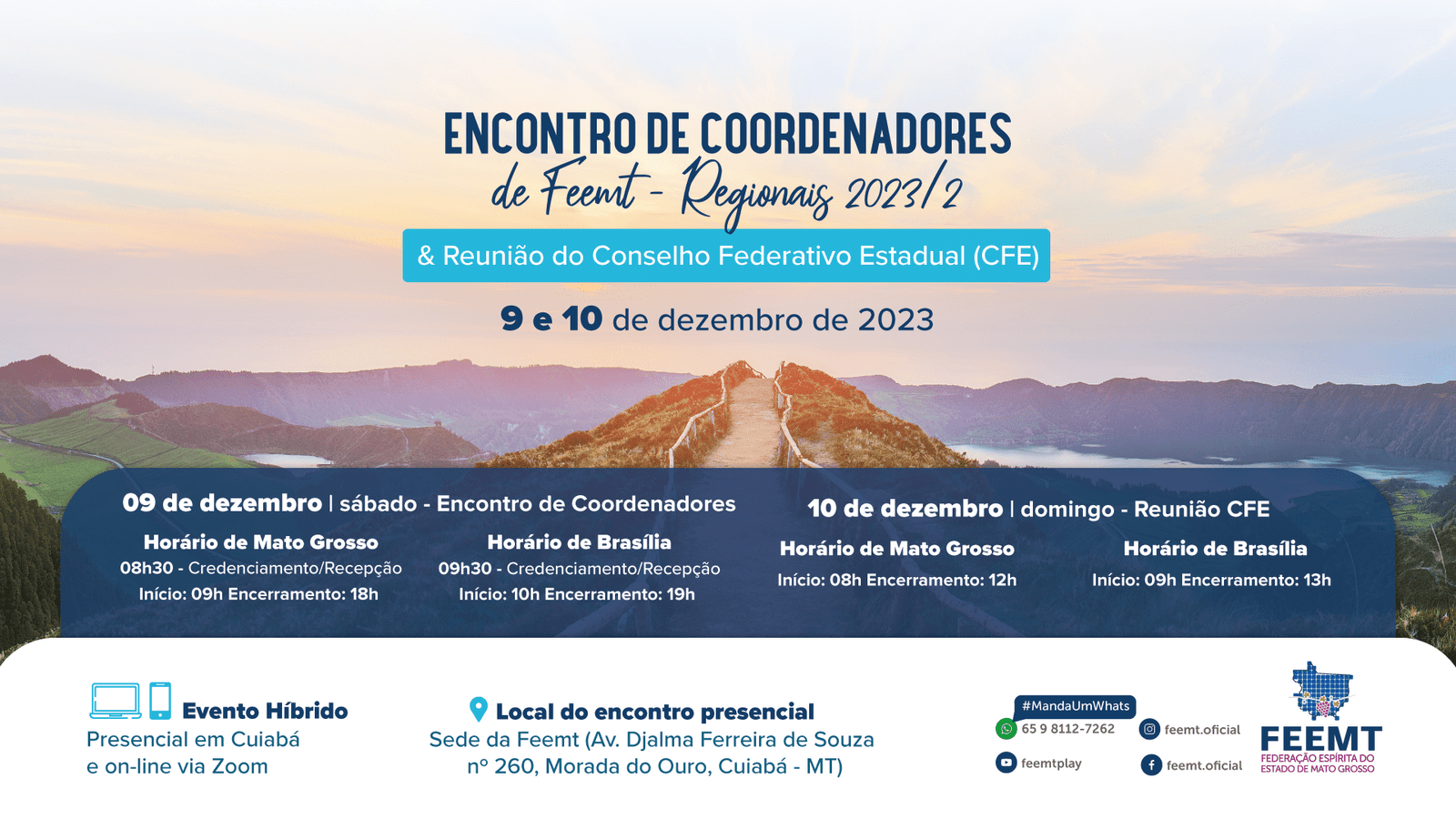 De 09 a 10 de dezembro a Feemt – Federação Espírita do Estado de Mato Grosso promove a segunda edição deste ano do Encontro de Coordenadores de Feemt – Regionais e a reunião do Conselho Federativo Estadual…